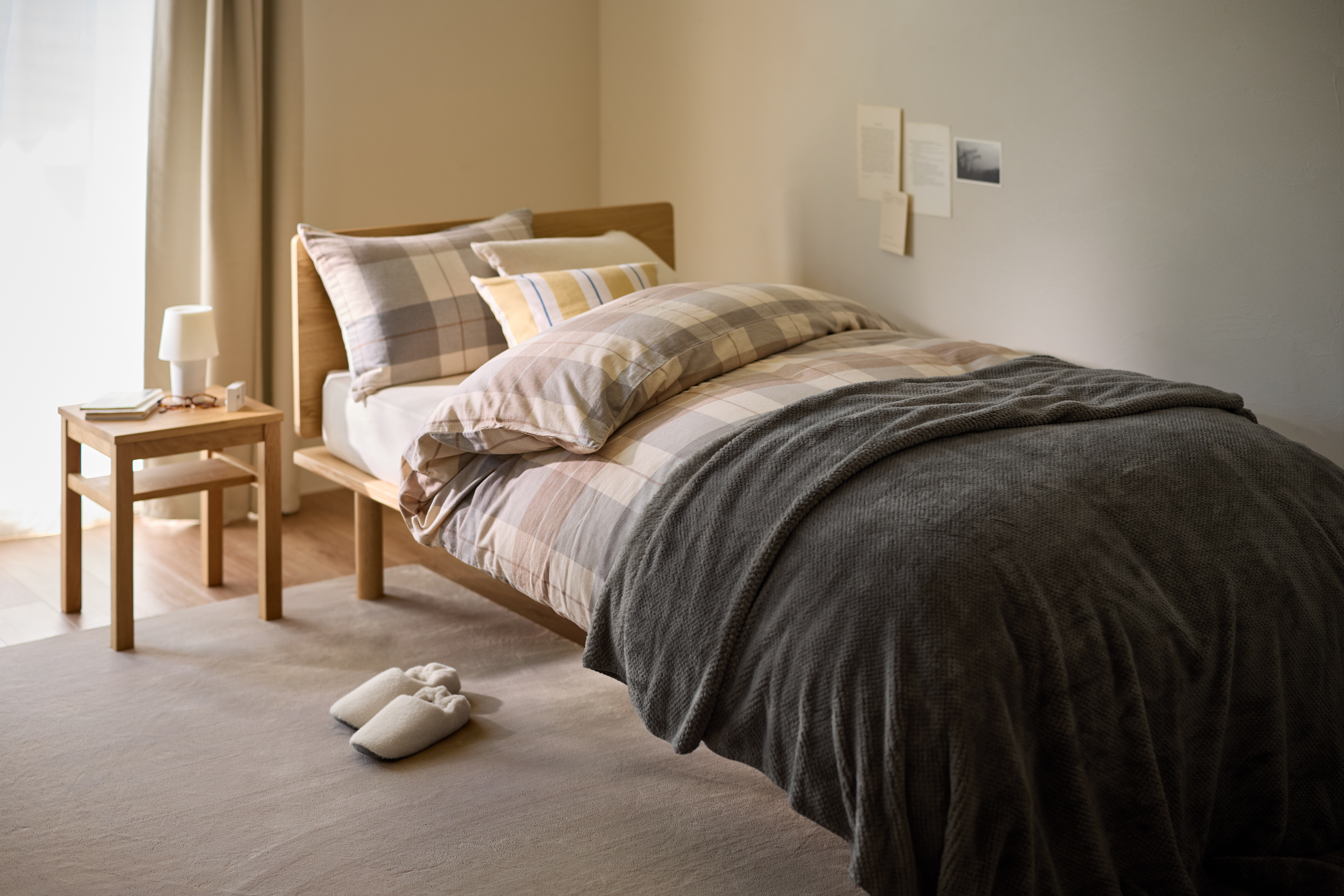 Wir wählen unsere Materialien nach ihren inhärenten Eigenschaften, ihrer Qualität und ihrer Haltbarkeit aus. Das ist es, worum es bei MUJI geht: von Leinen bis Edelstahl wollen wir langlebige und zweckmäßige Gegenstände schaffen, die die Essenz des Designs zelebrieren.