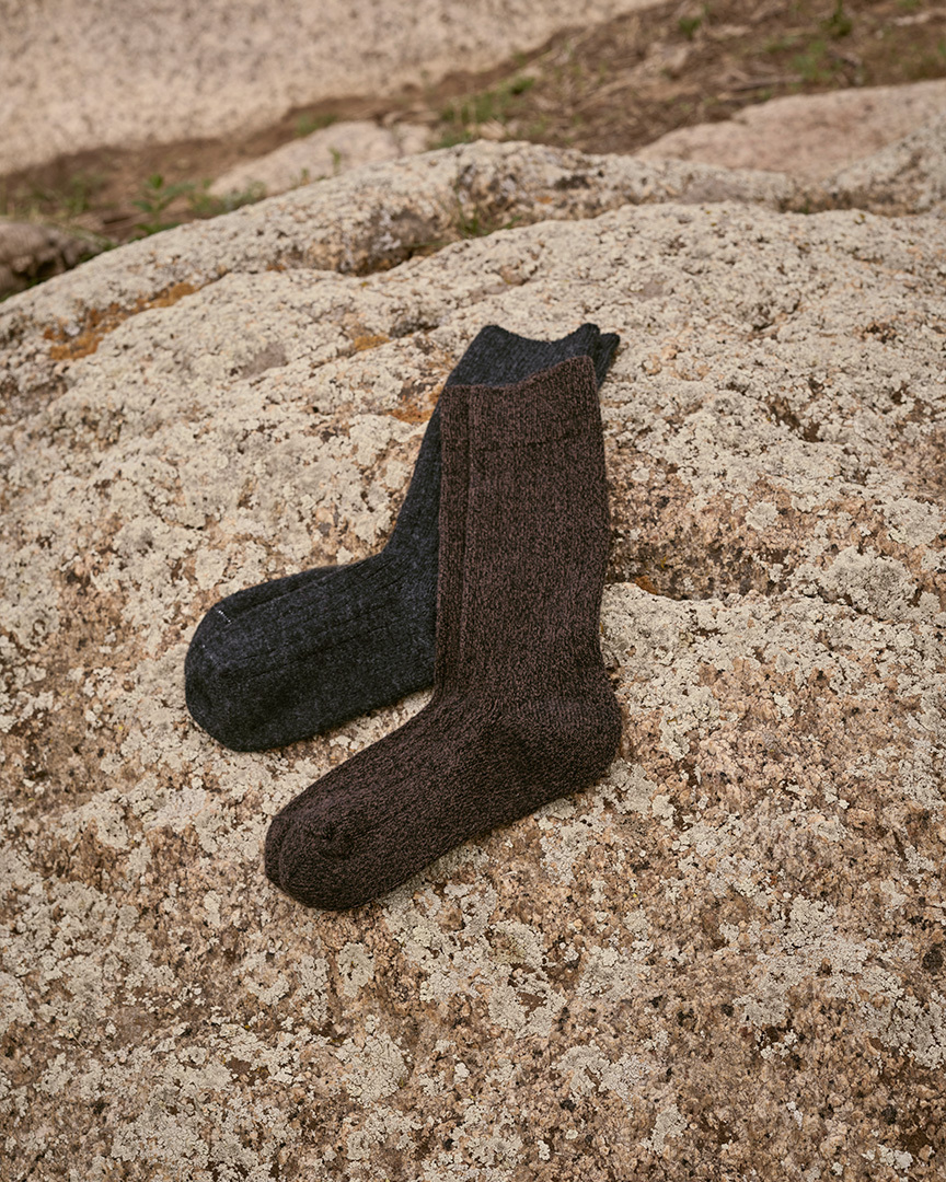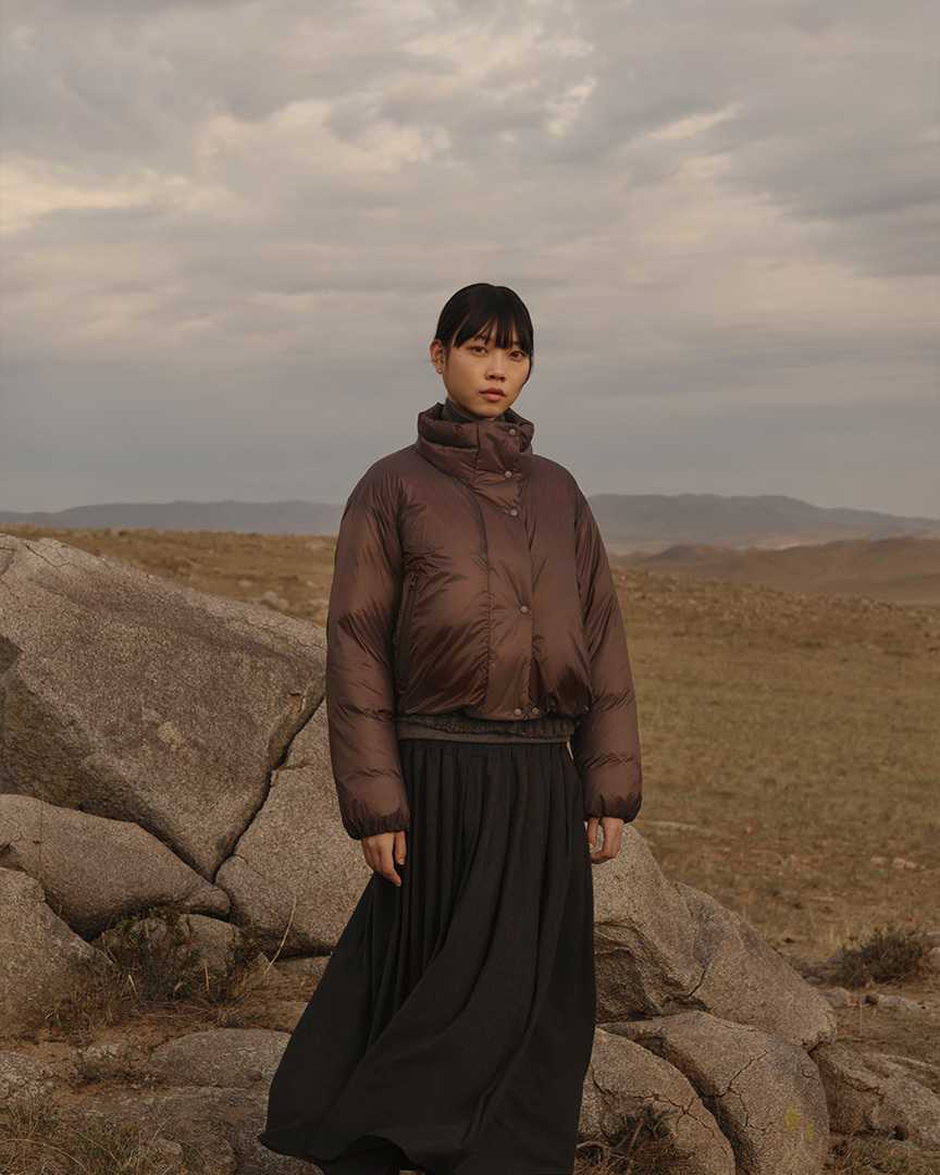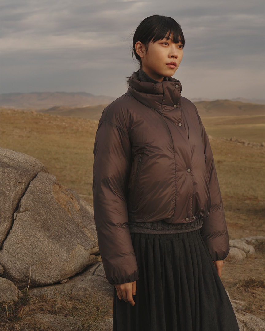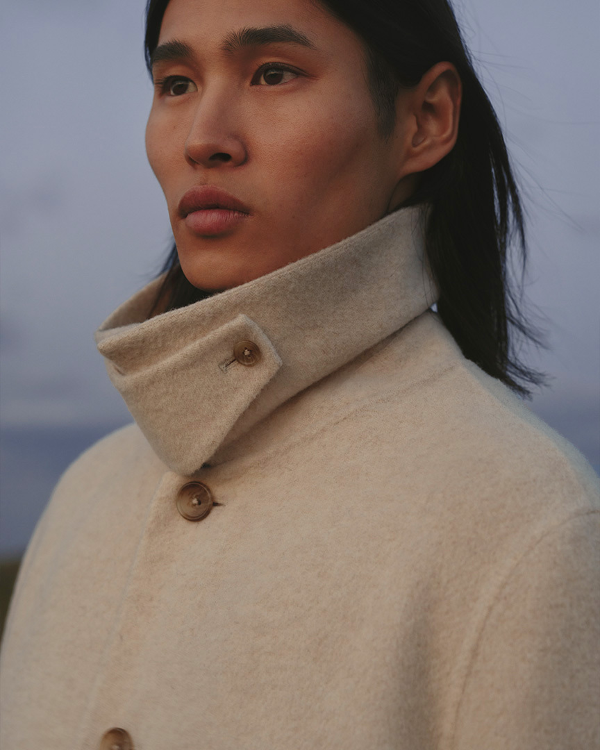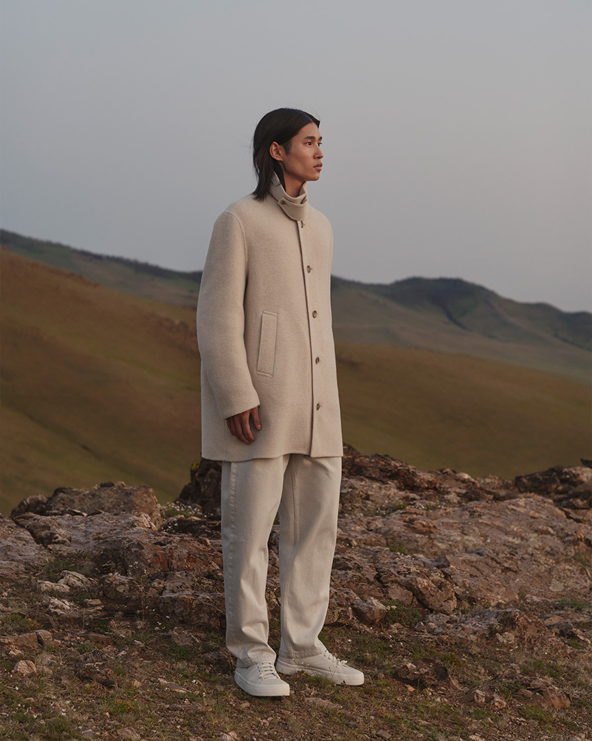 Dieses Material wird aus natürlich gefärbtem Kaschmir aus dem östlichen mongolischen Plateau hergestellt und ohne Bleichen veredelt, wodurch die schönen, natürlichen Farbtöne des Kaschmirs zur Geltung kommen. Es zeichnet sich durch sein reichhaltiges Volumen und seine außergewöhnlich weiche Textur aus.