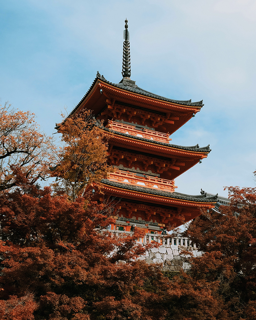Wie die Kirschblüten im Frühling faszinieren auch die wechselnden Farben des Waldes. Als Symbol des Herbstes regt die Rotfärbung der Ahorn- und Ginkgobäume zum Nachdenken an: Das ist die Tradition des Momijigari, wobei Momiji „Herbst“ bedeutet und Gari „Jagd“. Diese volkstümliche Tradition ist sowohl ein Erlebnis in der Natur als auch eine Quelle der inneren Einkehr. Sie lädt dazu ein, der Natur näher zu kommen und die Vergänglichkeit der Dinge zu betrachten. Die schönsten Orte, um das Herbstlaub in Japan zu bewundern, sind die Tempel von Kyoto (einschließlich Kiyomizudera), die Berge von Nikko, der Shinjuku Gyoen Park in Tokio und die Landschaften von Hokkaido.